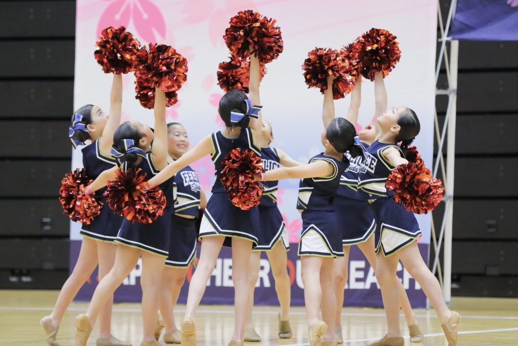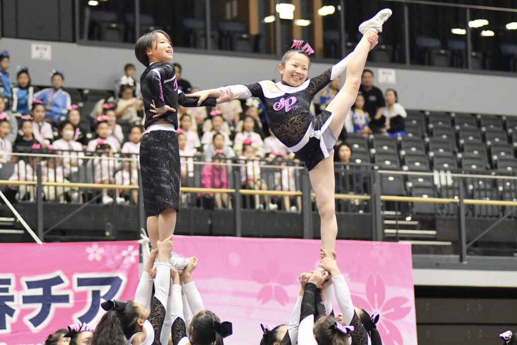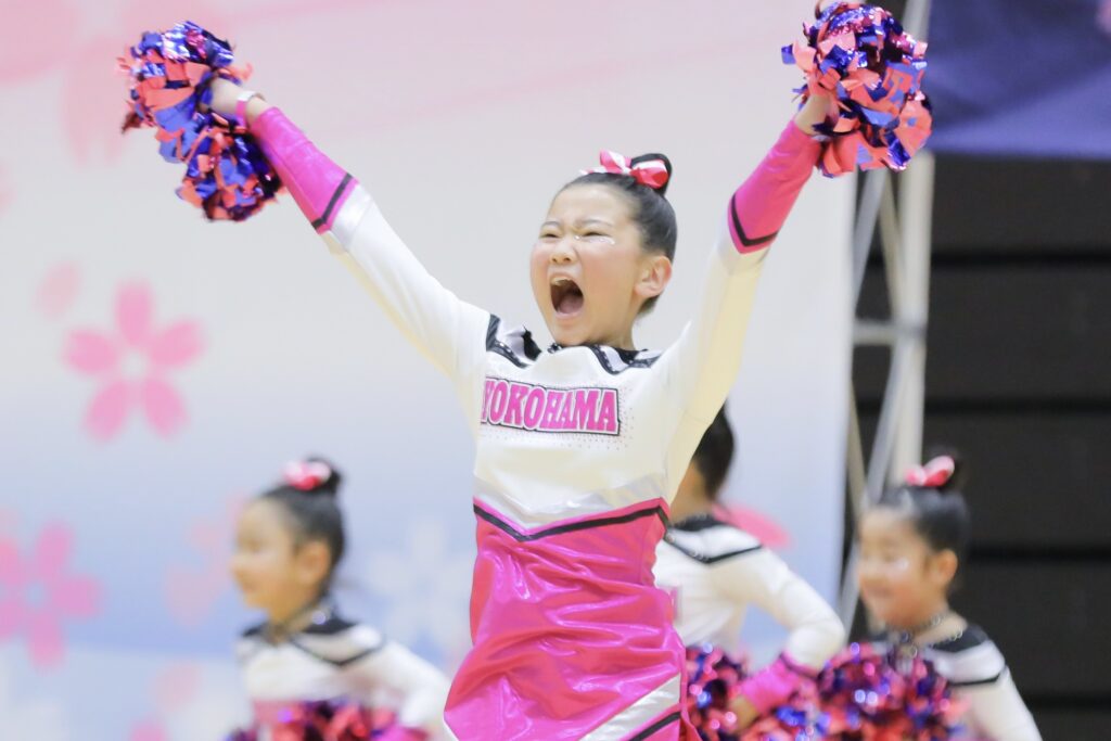 とびっきりのチアスマイル、真剣なかっこいい表情、躍動感あふれる演技。